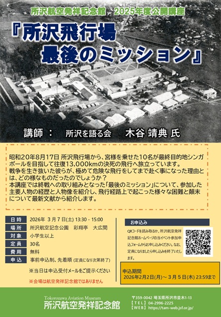 3月7日(土) 公開講座 「所沢飛行場 最後のミッション」