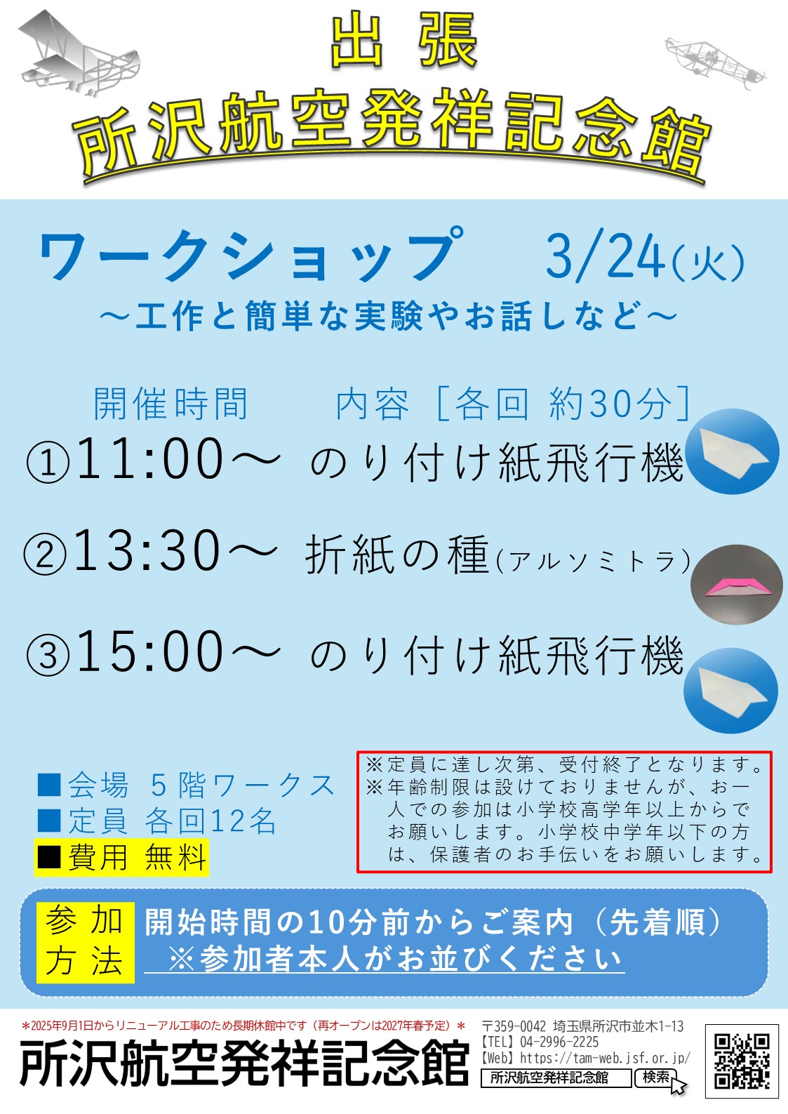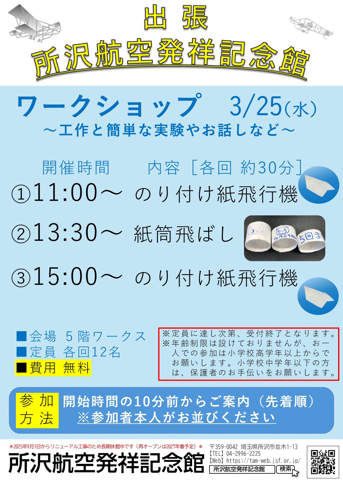 所沢航空発祥記念館で実施しているワークショップを科学技術館(東京都千代田区)で実施します。